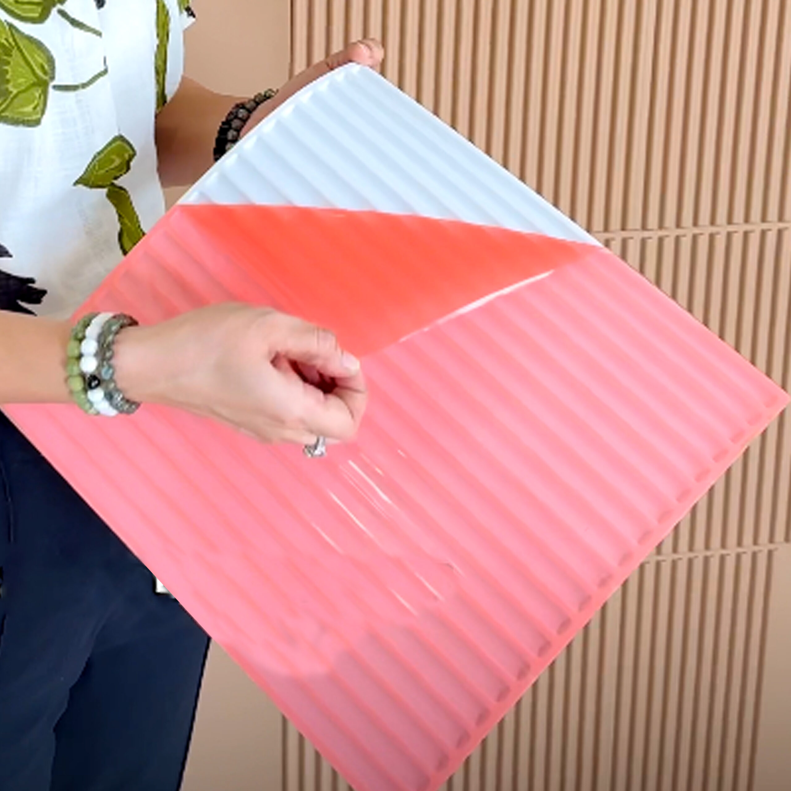 Elegant Lines is a 1x1 ft PVC wall panel with a self-adhesive back, allowing easy peel-and-stick installation on walls or ceilings. A a DIY-friendly product, it offers a coverage area of 1 square foot
